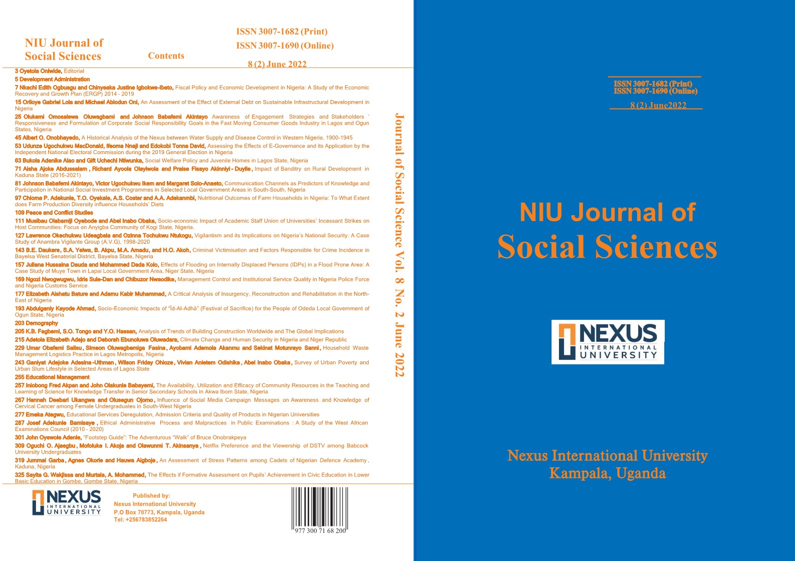 Vol 8 No 2 (2022)This issue of NIU Journal of Social Sciences focuses on Development Administration, Demography, Educational Management as well as Peace and Conflict Studies.