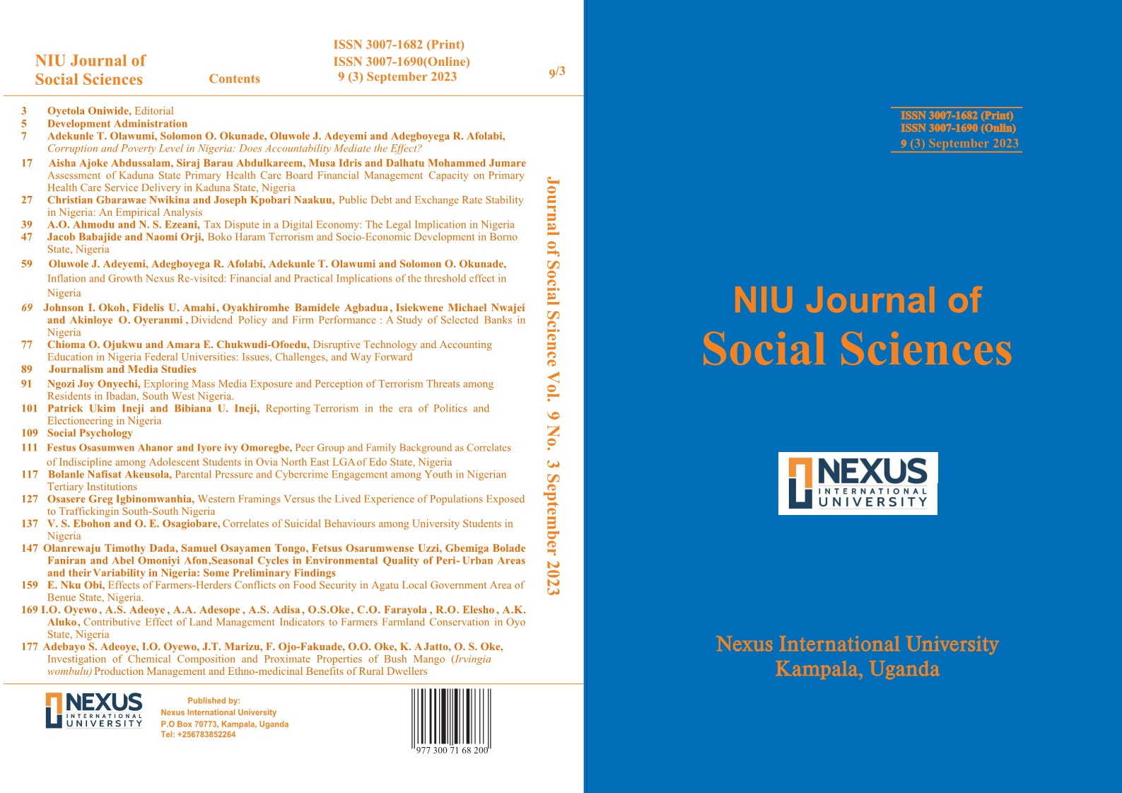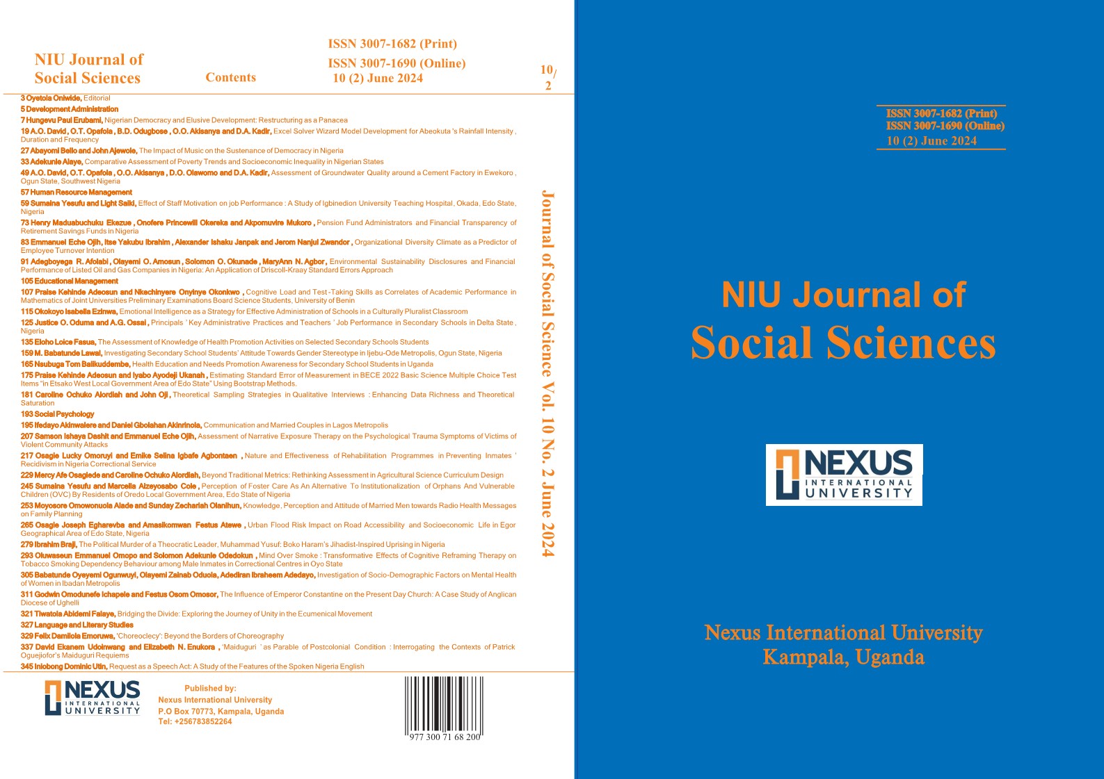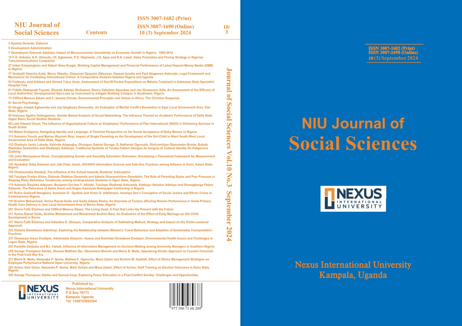 Vol 11 No 1 (2025)This edition of NIU Journal of Social Sciences focuses on Development Administration, Social Psychology as well as Business and Entrepreneurship Education.